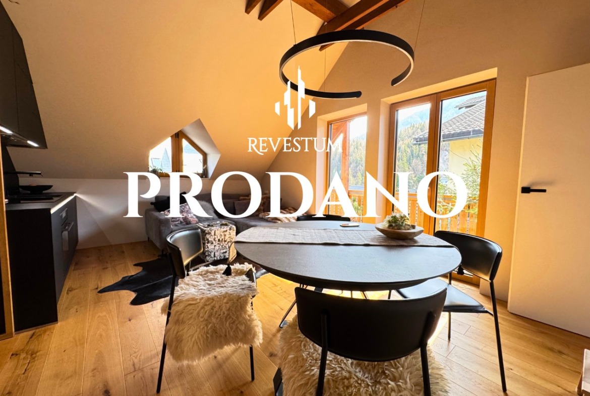 A fully renovated and furnished attic apartment is for sale in a prime location in Kranjska Gora. Located in a quiet part of town, just a short walk from the ski slopes and the center, the property is ideal as a permanent residence, a holiday home, or an investment for rental. The apartment comes with a private parking space behind a barrier. Monthly costs are very low.