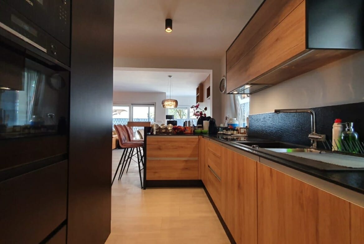 A nicely finished twin house in Črna vas, in the suburbs of Ljubljana. It is located 5 minutes drive from the shopping center Rudnik, E-Leclerec, and 15 minutes drive to the city center (7.6 km), which is also connected by LPP bus system.